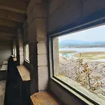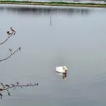 Værelserne har udsigt til søen.